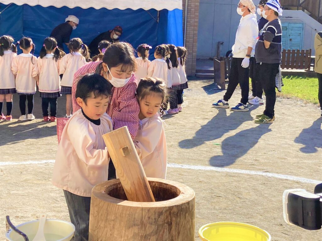 天気も良く、お餅つきができて子どもたちは楽しそうでした👦👧
