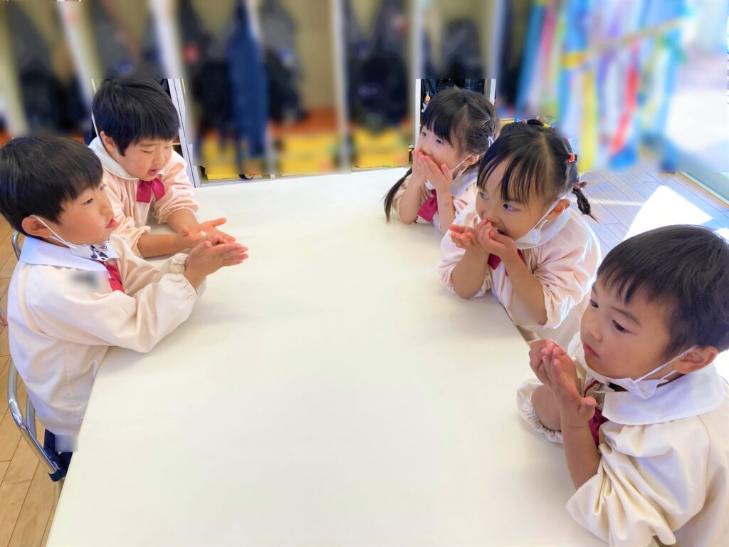 ↓先生と一緒にペッタンペッタン!つきたてのお餅はとても柔らかいんだよ♪と見せると「わぁ~✨」と歓声が聞こえました☺