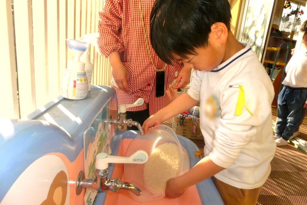 ↓お米とぎをして飯盒にお米を移し、炊けるのを待ちま~す😚