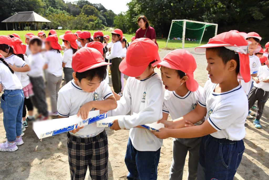 お外でお友達みんなで食べるお弁当🍙とってもおいしいね🥰