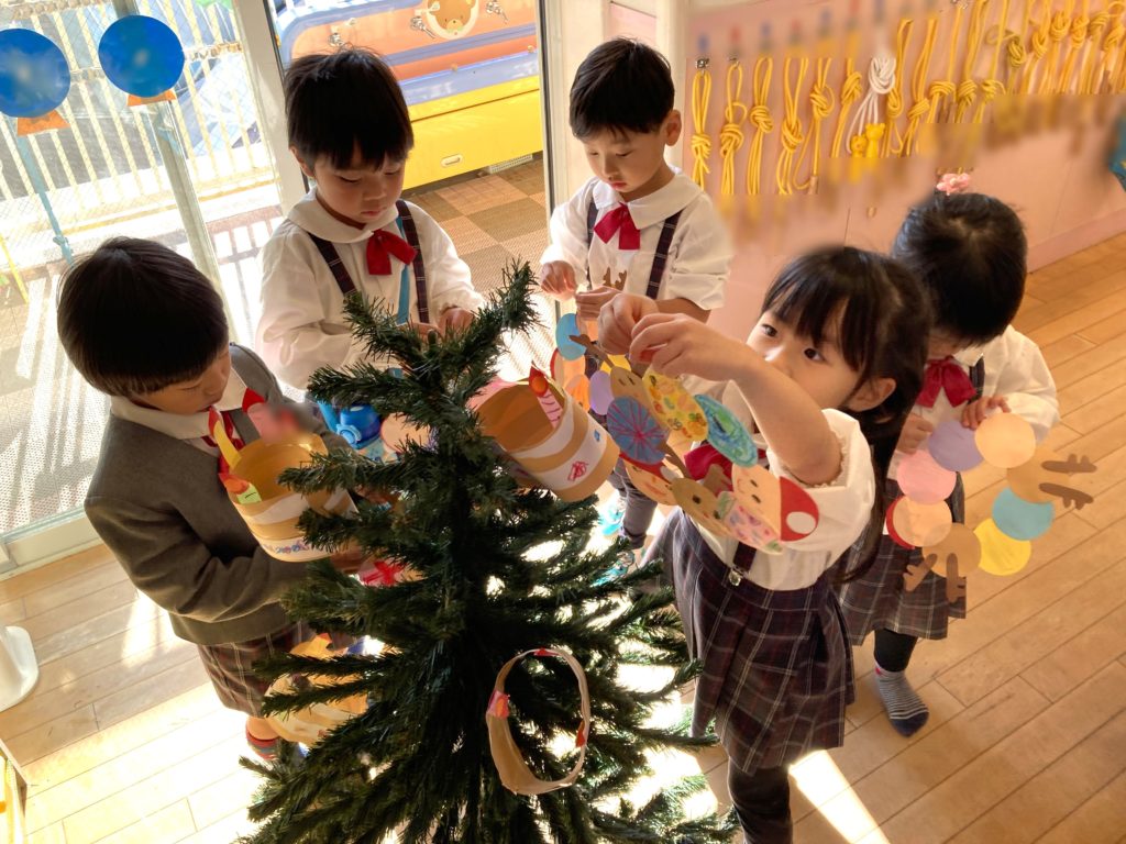 ↓クリスマスツリーに自分たちで飾りつけをしました😆