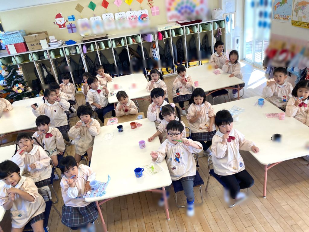 ↓虫歯予防教室の後、お部屋に戻って歯の磨き方をみんなでおさらいしました😄