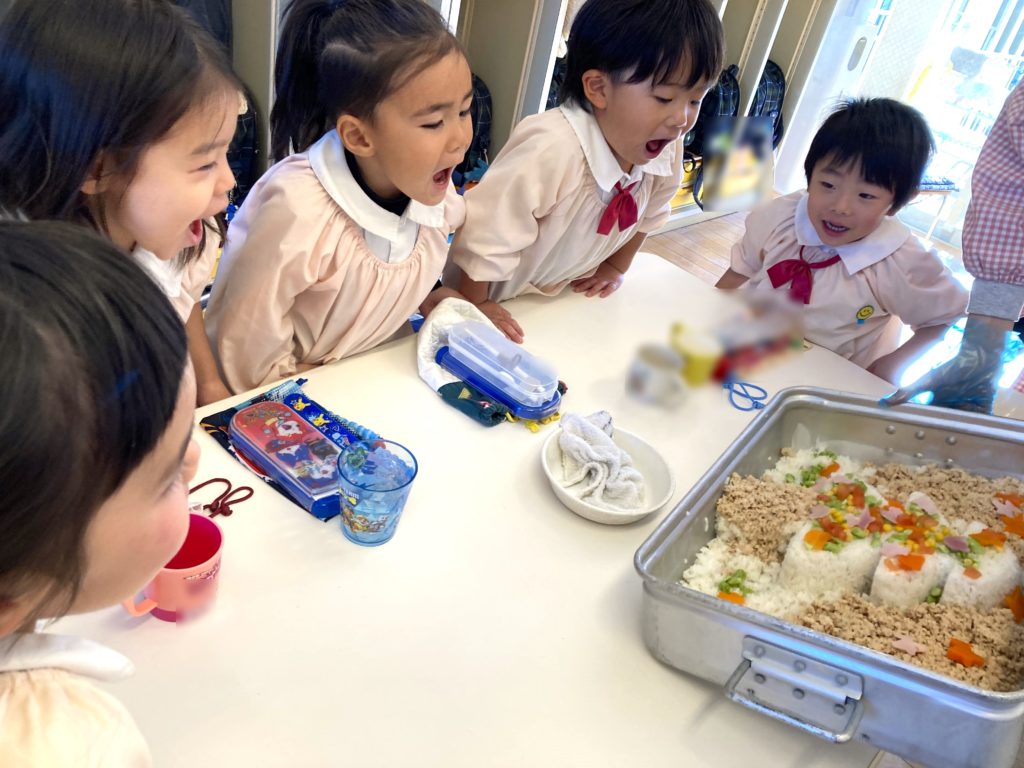 ↓クリスマス会の日の給食は行事食のクリスマスツリーのご飯でした🎄