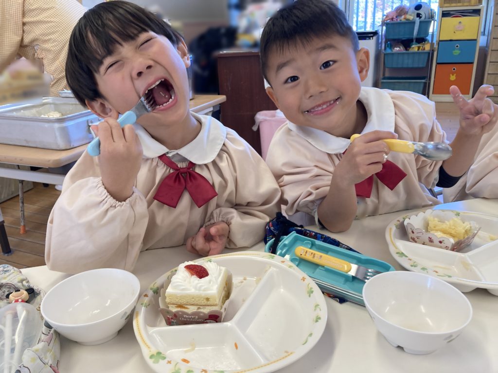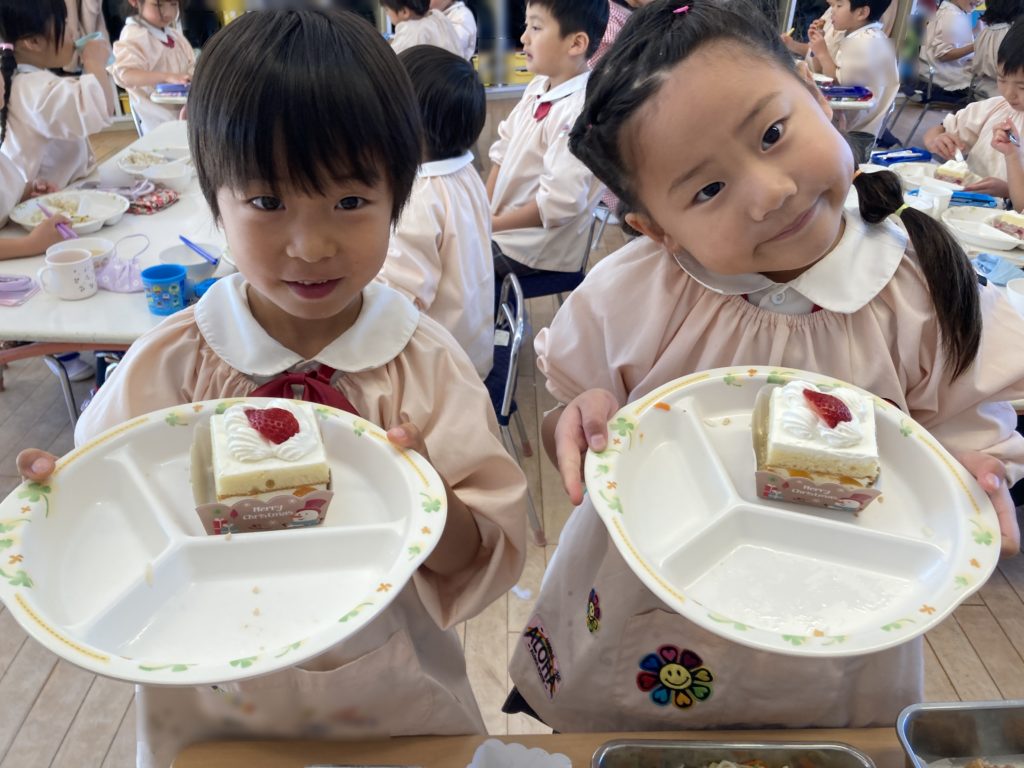 ↓給食の時にケーキ🍰がでたよ🙌美味しかったね💕