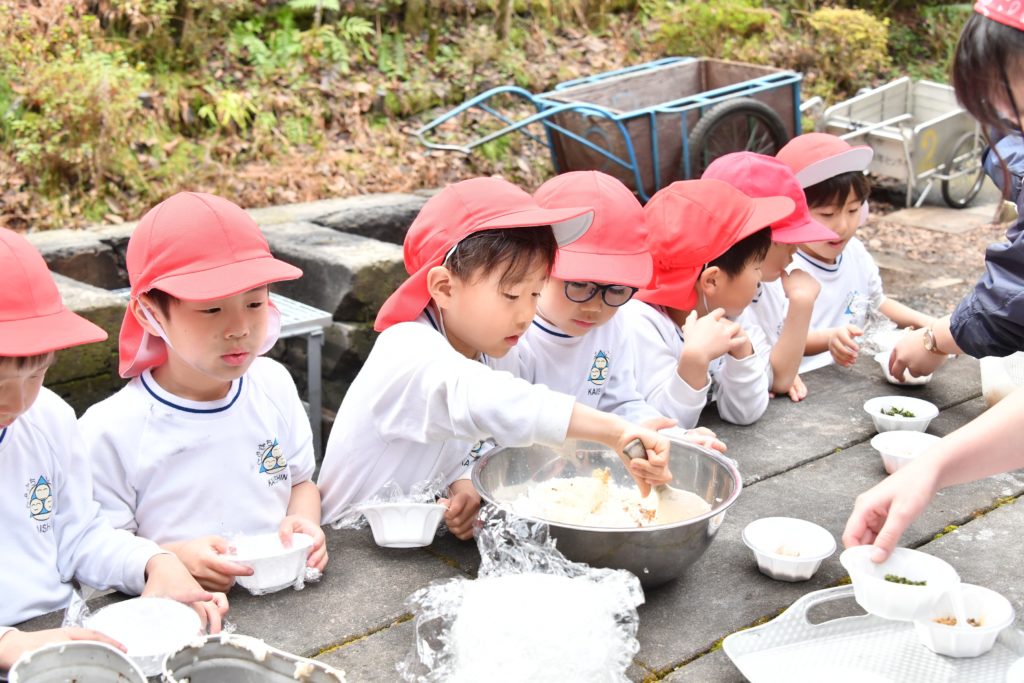 お米とぎや玉ねぎの皮むきなどみんなでクッキング🎵