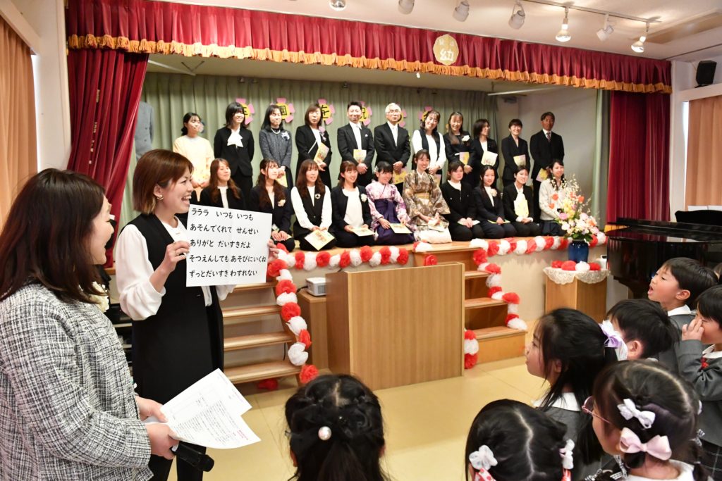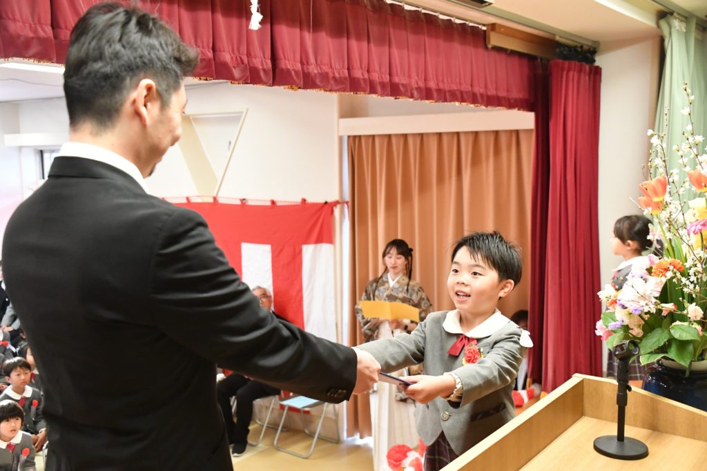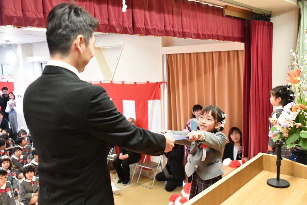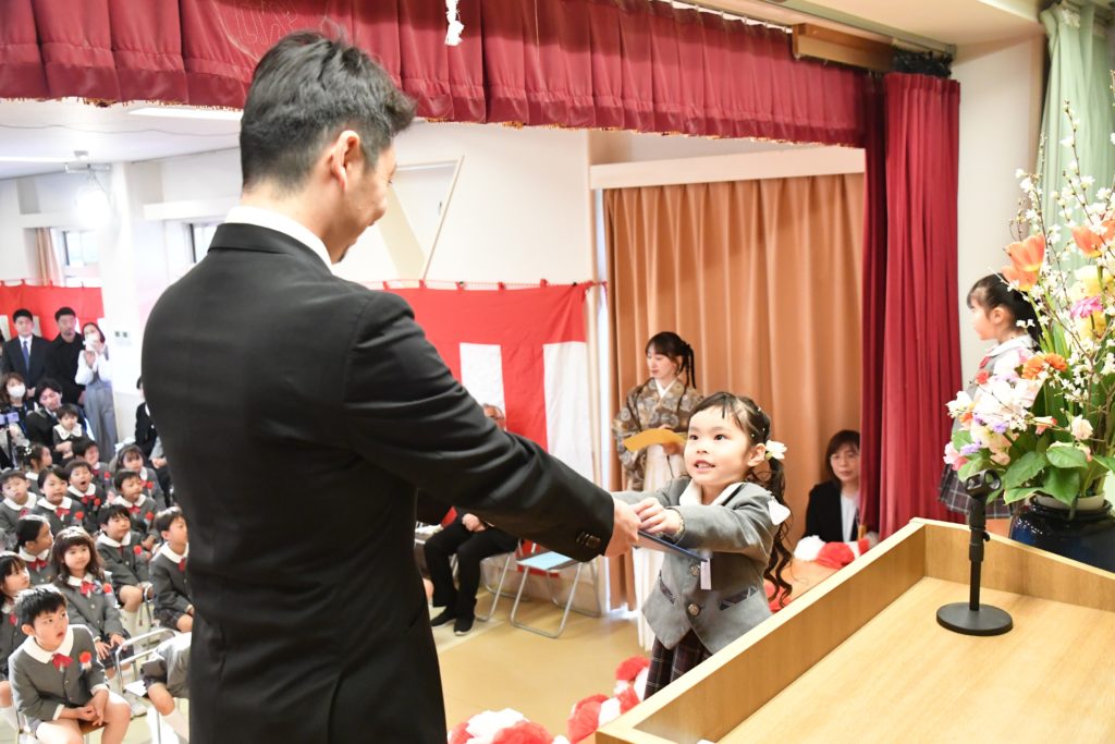 園長先生から修了証書を受け取る子どもたちは、みんな堂々としていて立派でした✨
